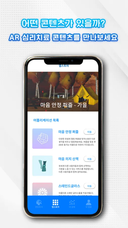 메디클럽 앱 내에서 AR 심리치료 콘텐츠 앱에 빠르게 접근할 수 있습니다.