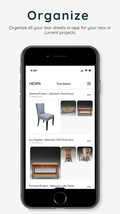 Originally conceived to eliminate the time-consuming pain point of handwriting fabric sample requests on pads while sourcing in the showroom, it has now evolved into a dynamic tool to make sourcing, sharing, and collaborating easy and efficient. At HEWN, the interior design community is at the center of all that we do...download the app today, and let’s get to work!