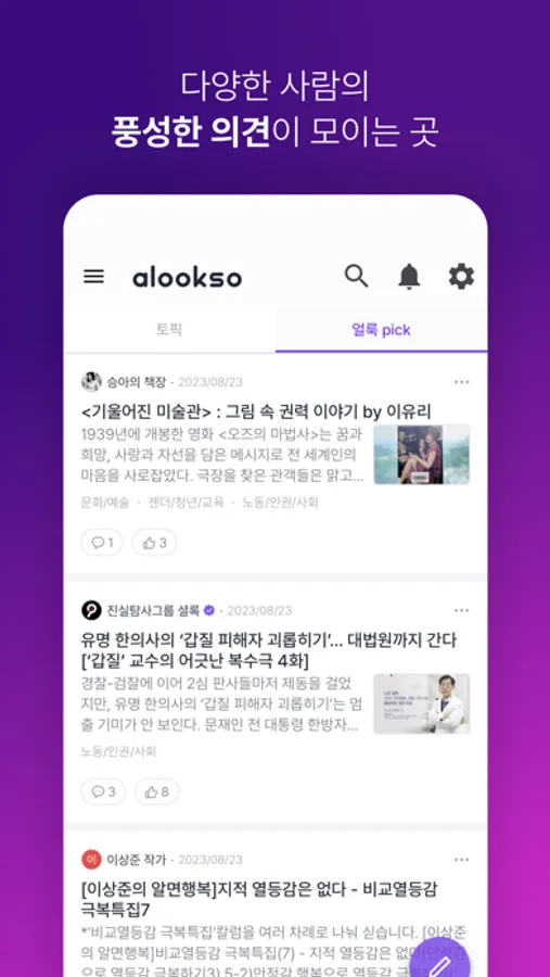 - 지금 뜨는 이슈와 글을 한 눈에 볼 수 있어요.