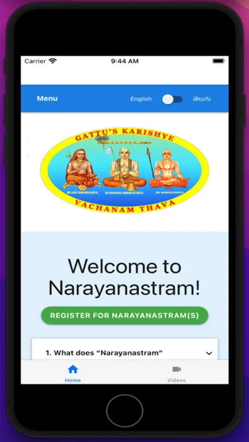 Narayanastram is the combination of one shloka of sri valmiki ramayana one shloka of srimat bhagavadgeetha and one namam from vishnu sahasra namam. Everyone will get different set of shlokas. Everyone has to chant everyday. As a result everyone gets the grand fruit of chanting entire ramayana, entire geetha and entire vishnu sahasra nama stothram.