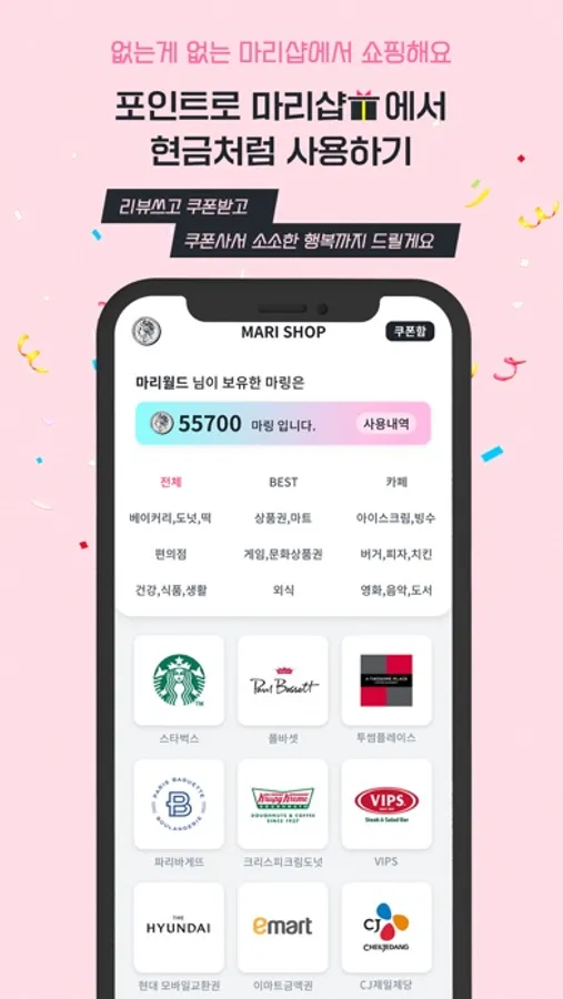 리뷰 쓰고 현금 같은 포인트 적립하기! 적립된 포인트로 없는게 없는 마리샵에서 쇼핑하기