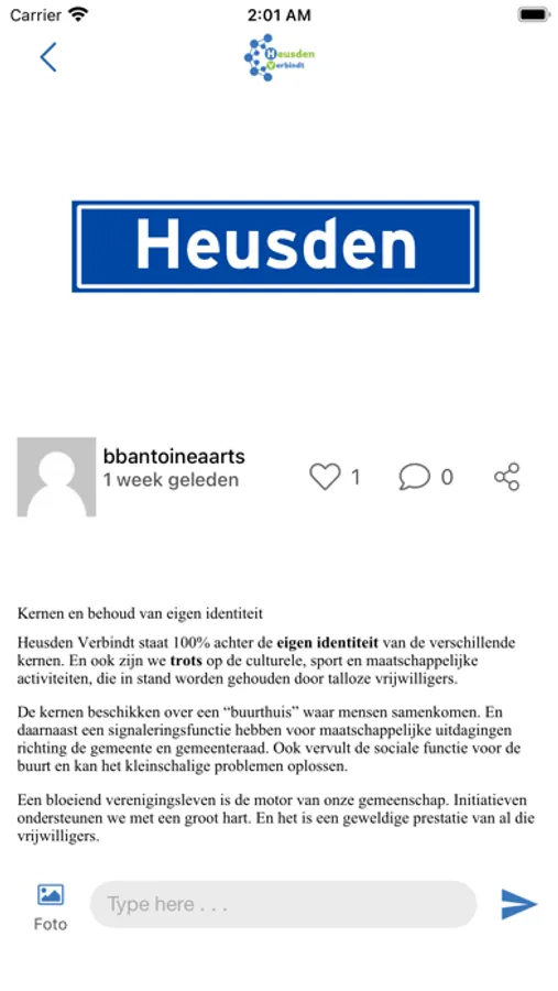 Heusden Verbindt app maakt het mogelijk voor de inwoners van de gemeente Heusden om direct in contact te staan met hun volksvertegenwoordigers. De gebruikers kunnen met de app hun mening en feedback geven op lokale ontwikkelingen in Heusden.