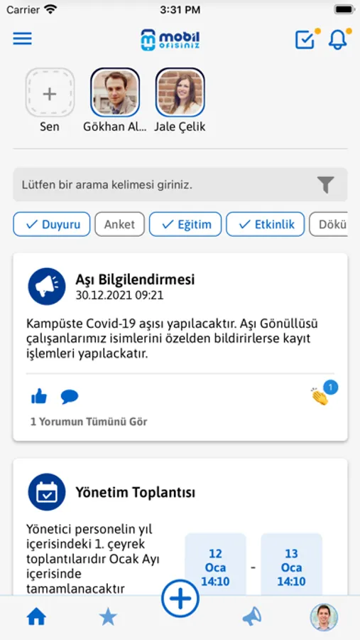 Personeller şirketin paylaştığı duyuruları görüntüleyebilir.