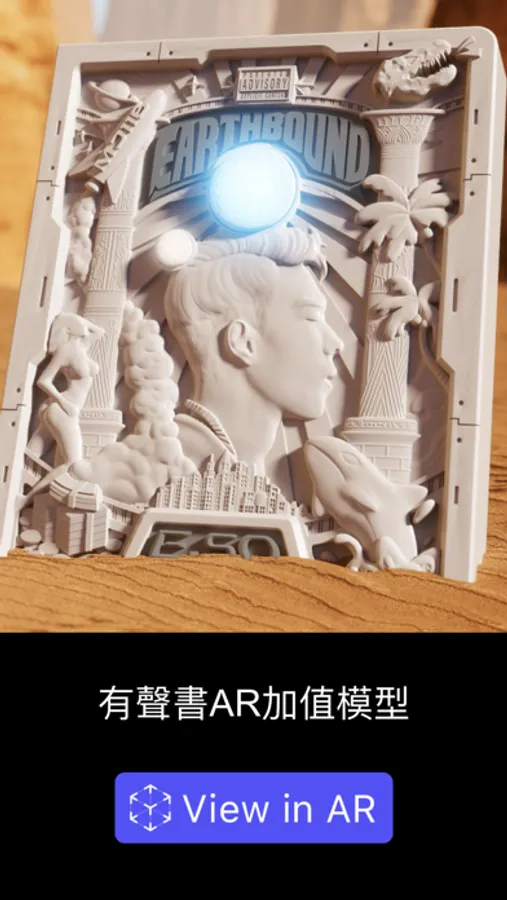 本程式為《EARTHBOUND》實體有聲書的AR贈禮,您可以藉由手機的AR投影技術,觀賞平面有聲書封面立體化後的影像,甚至在聆聽鑑賞專輯的過程中,透過AR技術來品嘗斟酌每首歌的歌詞,思考其文字背後的韻味