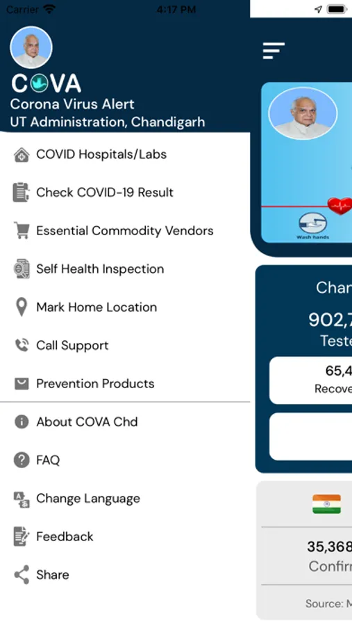 Corona Virus Alert (COVA) Chd Mobile App has been launched by UT Administration, Chandigarh to provide citizens with with preventive care, Hospital, Lab, Essential Commodity vendor’s information and other government advisories. The app has following main sections for citizens:
