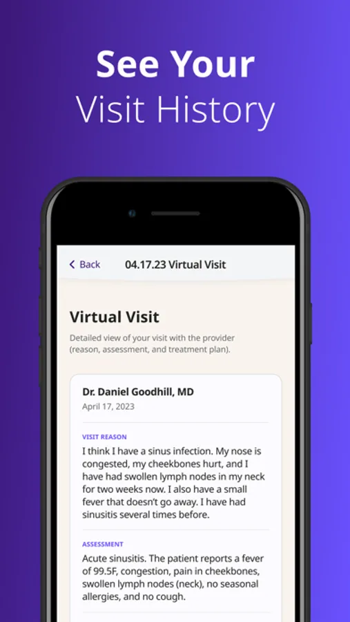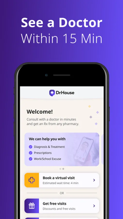 3. Start a virtual doctor visit anytime - have a visit with an online doctor in 15 minutes or less.