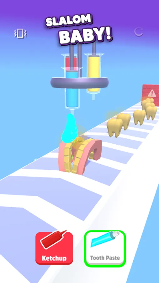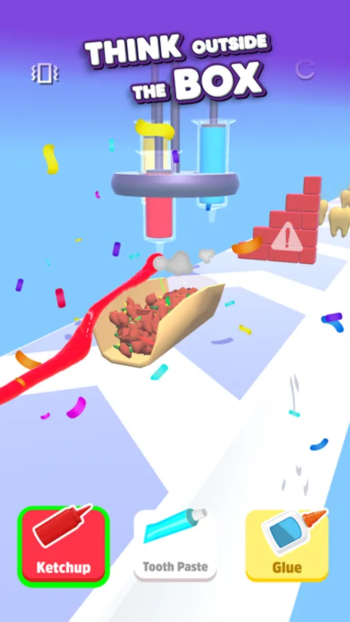 Get ready for a crazy journey. You have a great machine that carries 2 or 3 kinds of squeezable. This machine squeezes one of the 3 liquids you choose from the bottom when you touch the screen, according to your right and left swipe while moving forward. These are: Ketchup, Glue and Toothpaste. Squeeze whatever needs help on the objects you find on the way. Try to make all the objects good. Or you might like to put glue on pizza if you want, but we don't recommend trying it in real life... and no, we haven't tried applying glue on pizza in real life. But you can try many such absurdities in this game.
