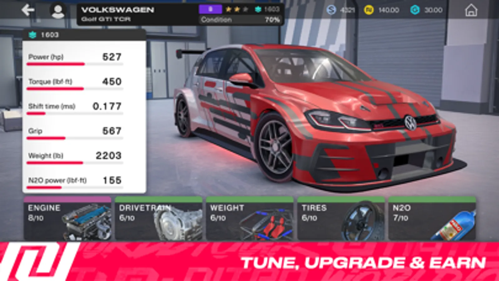 - Prepare for each car competition with upgrades, car tuning, and maintenance in custom workshops