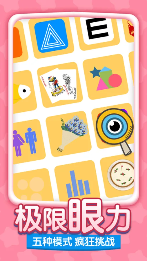 包含静态观测、动态观测、颜色辨别、空间感观、微观辨物等五种训练模式,至少20个专业小游戏供玩家测试眼力、提高水平。
