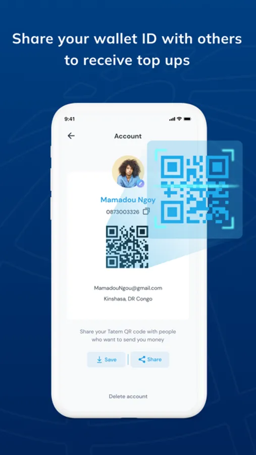 - Share your Tatem number with other people to receive transfers
