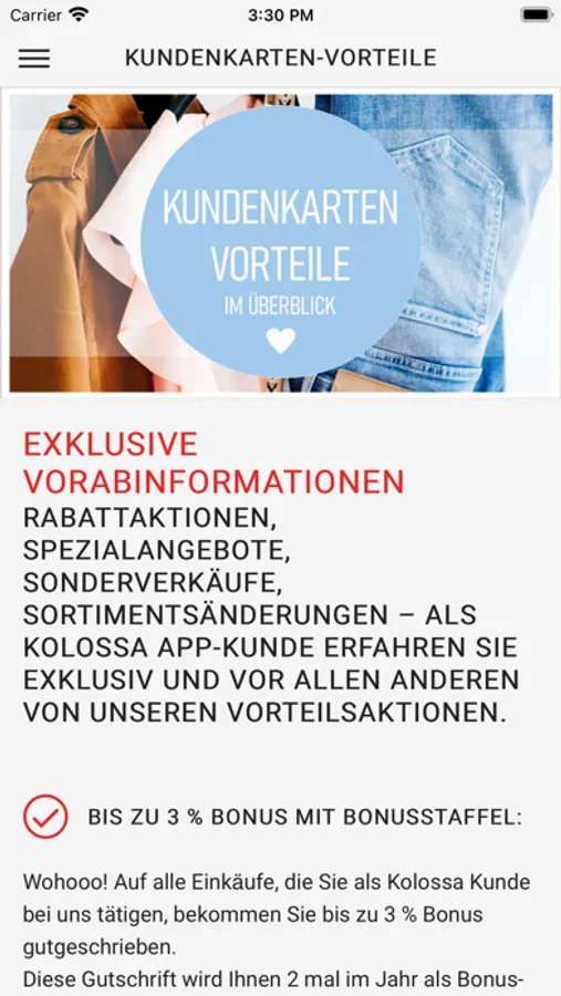 1. Ein Muss für alle Mode-Fans: Mit der Kolosssa App haben Sie alle Vorteile als Kolossa Kunde und Ihre digitale Kundenkarte immer auf Ihrem Smartphone dabei.