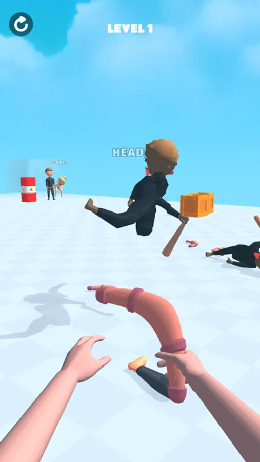 Use your boomerang to destroy all enemies and save the hostages.