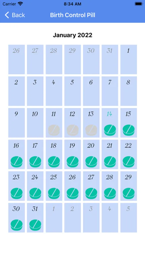- Calendar: You?ll be able to see the complete calendar with all the pills that have been taken and all the upcoming doses in a visual and practical way.