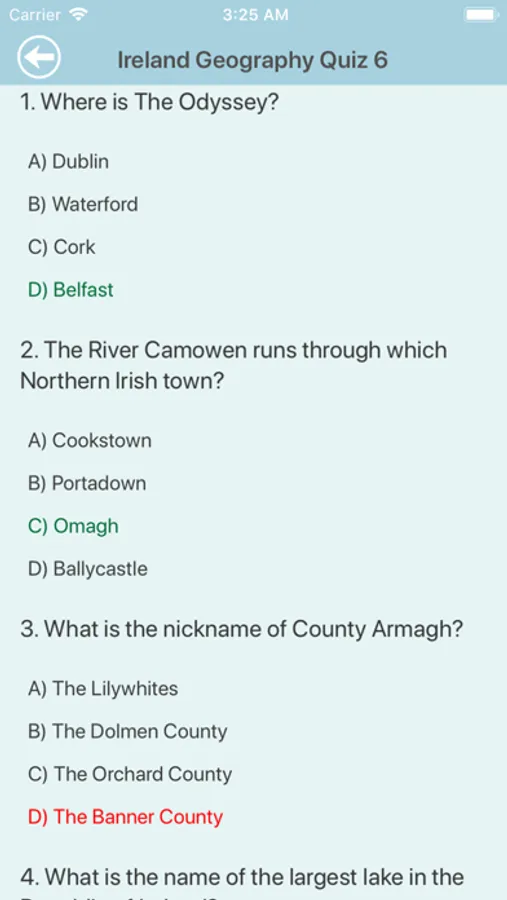 Find out and improve your information answering the questions and learn new knowledge about Ireland geography by this app.