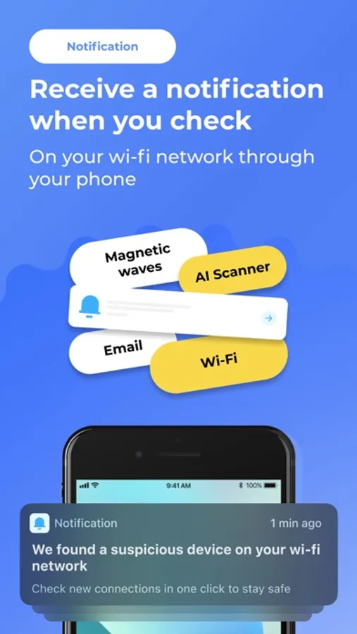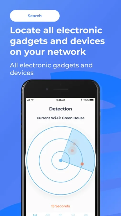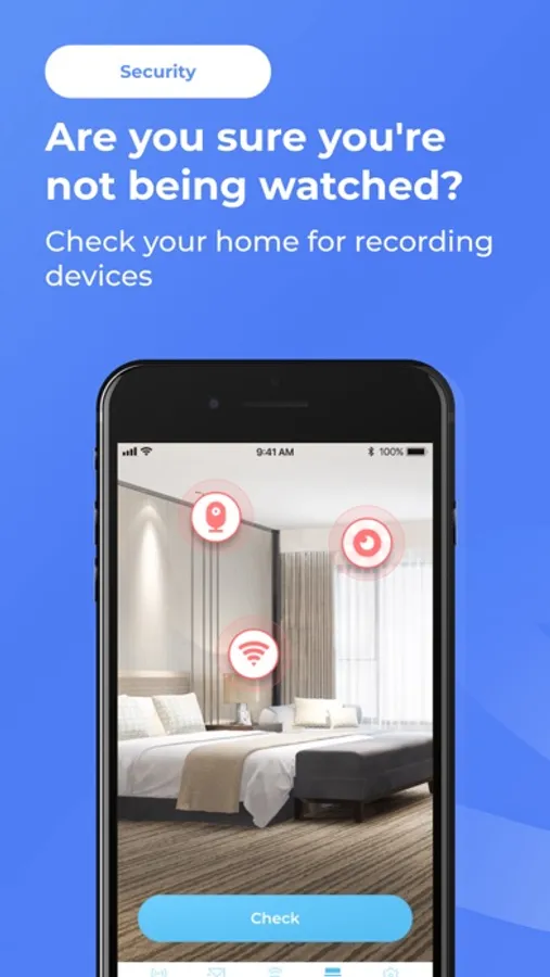 It is now very easy to find devices in the room where you are. With one click of a button in the application, you can find all the devices connected to your network, the scanner will help you find all the cameras around, and you can also detect electronic devices that are built into other furniture and interior items.