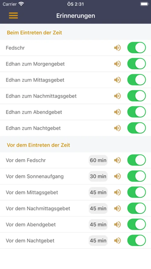 * einstellbare Gebetserinnerung mit Edhan oder anderen Tönen