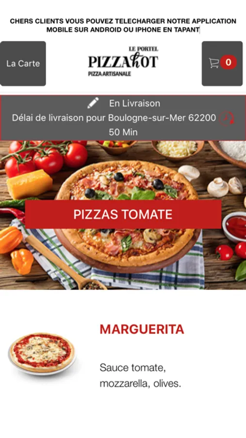 L'application PIZZAHOT62 vous permet de commander en ligne ou par téléphone via votre application. Vous pouvez consulter notre carte et choisir vos produits.