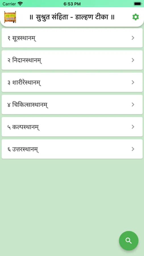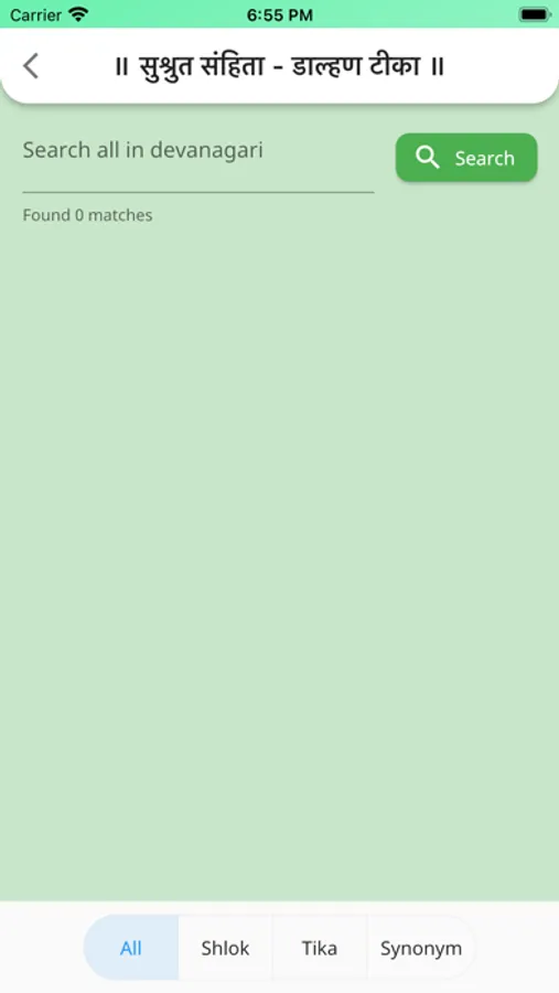 - You can select sthan, adhyaya, synonyms in the dropdown box.