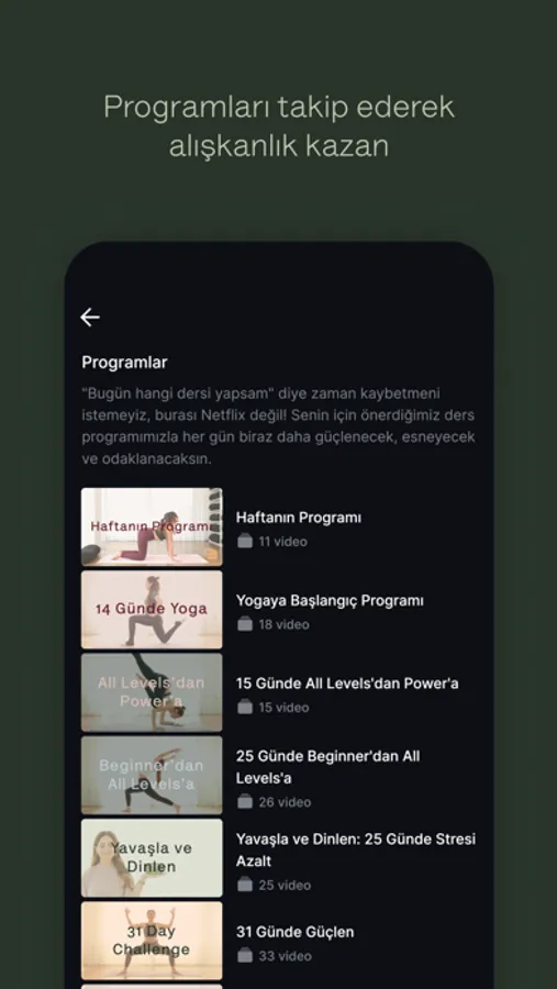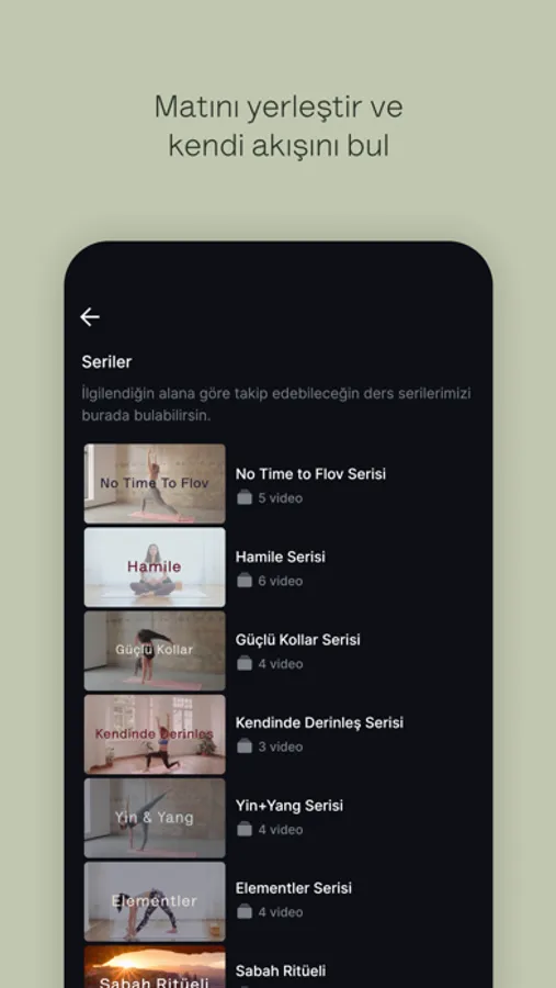By determining the level, duration, pace and instructor, you will be able to reach the lesson you are looking for. Or, thanks to the series we have prepared for you, you can maintain regularity in your practice by doing the chosen lesson for each day.