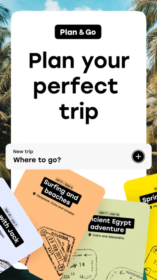 No more worries! Plan&Go will help you organize your perfect trip in a few simple steps.