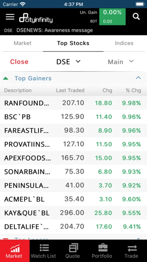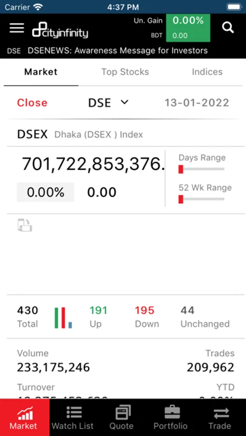 To use City Infinity, you will need to open Beneficiary Owners (BO) Account with City Brokerage Limited and register for City Infinity. To register please visit www.citybrokerageltd.com . Upon successful registration you will receive username and password in your registered email. Please use your credential to login to the application with your platform of choice and enjoy real-time online trading in both stock exchanges of Bangladesh from anywhere in the world.
