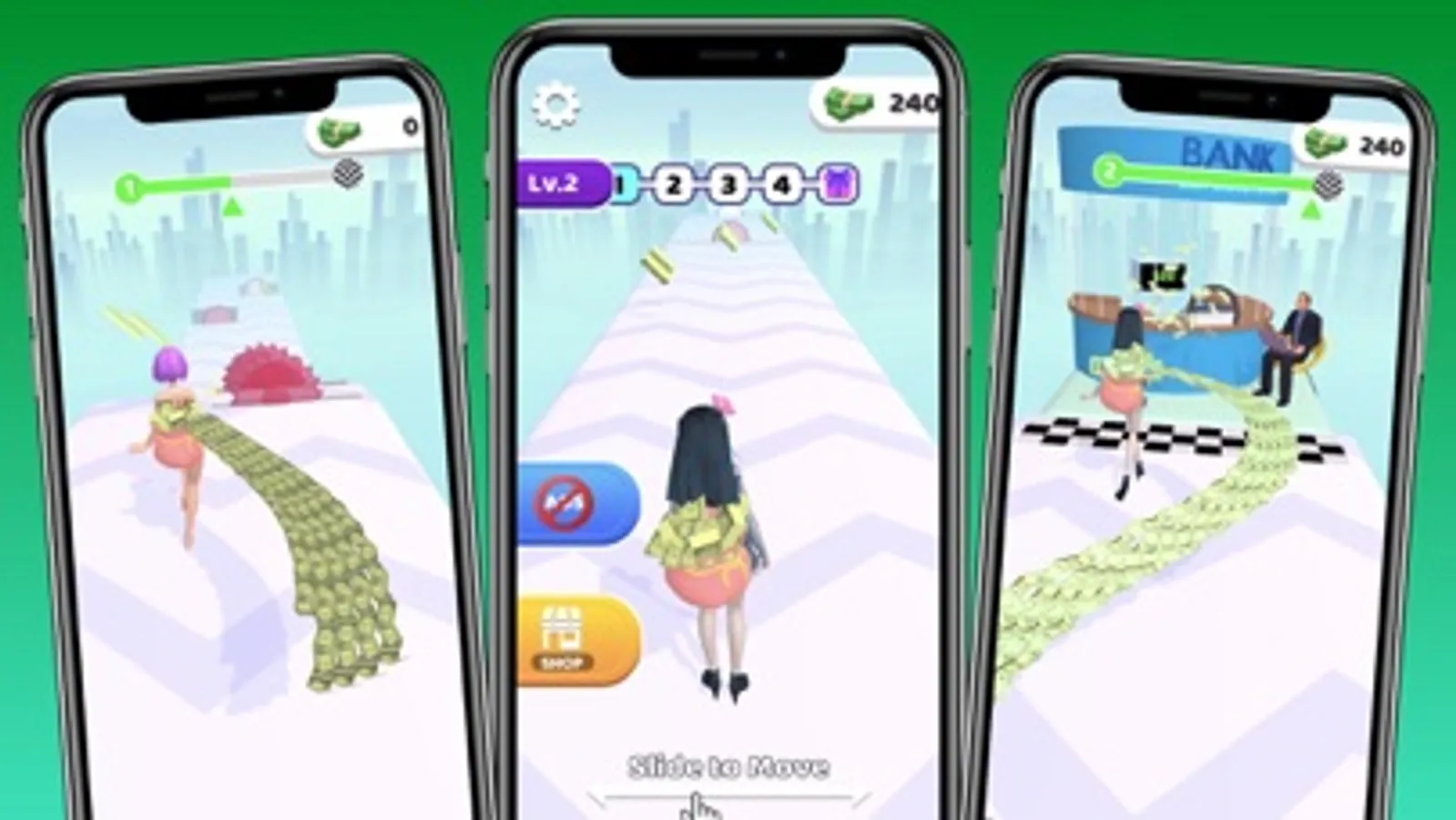 In this adventure - the longer your money trail, the higher your score! Run through a majestic runway, collect bonuses, complete challenges, avoid the obstacles and get to the finish line with the longest cash trail possible!