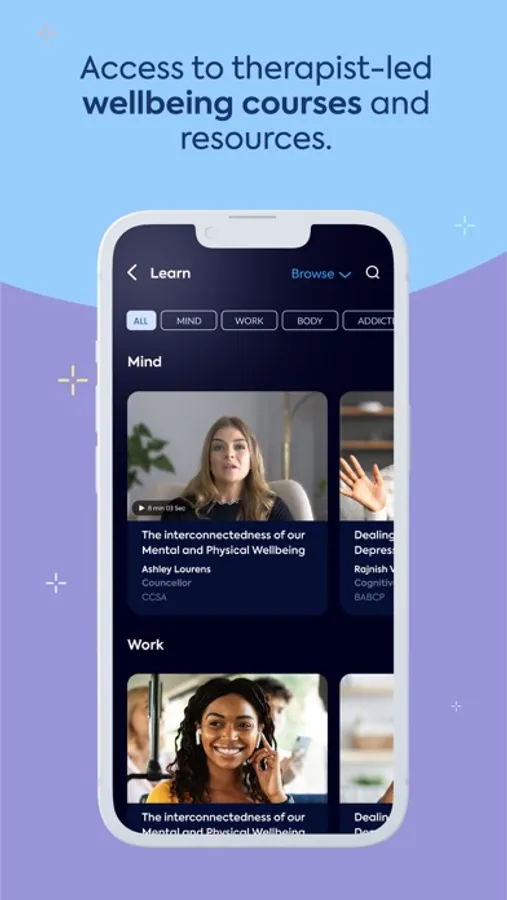 • Enjoy full access to on-demand, therapist-led wellbeing courses