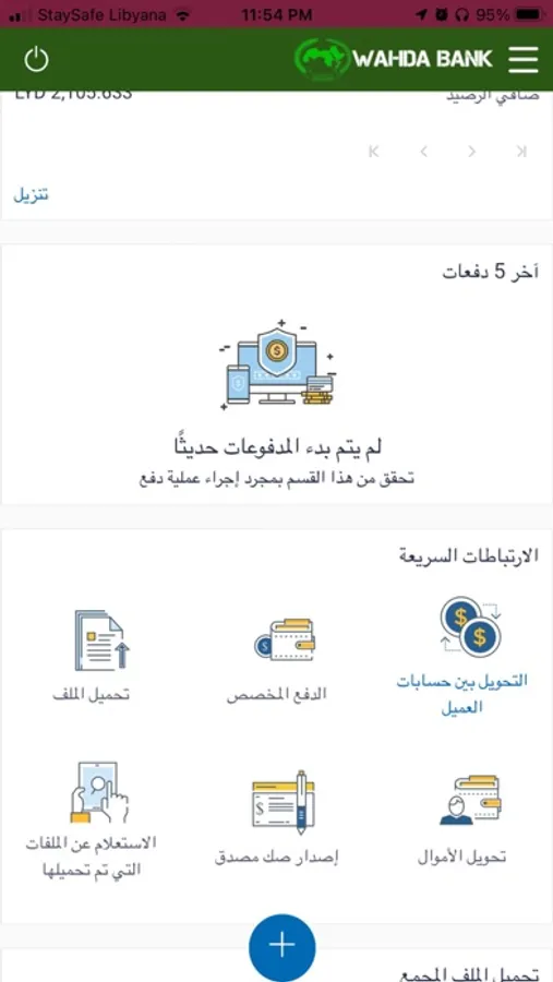 Wahda Bank's customer can access their banking relationships over mobile app. They can perform financial transactions, inquire about their accounts.