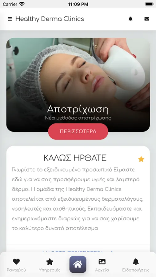 Κλείστε ραντεβού, ενημερωθείτε για τα υπάρχοντα ραντεβού, κλείστε καινούργιο πακέτο, μάθετε τους πόντους ανταμοιβής σας, δείτε καινούργιες θεραπείες και ενημερωθείτε για τα νέα της δερματολογίας και τις τάσεις στις θεραπείες anti-aging.