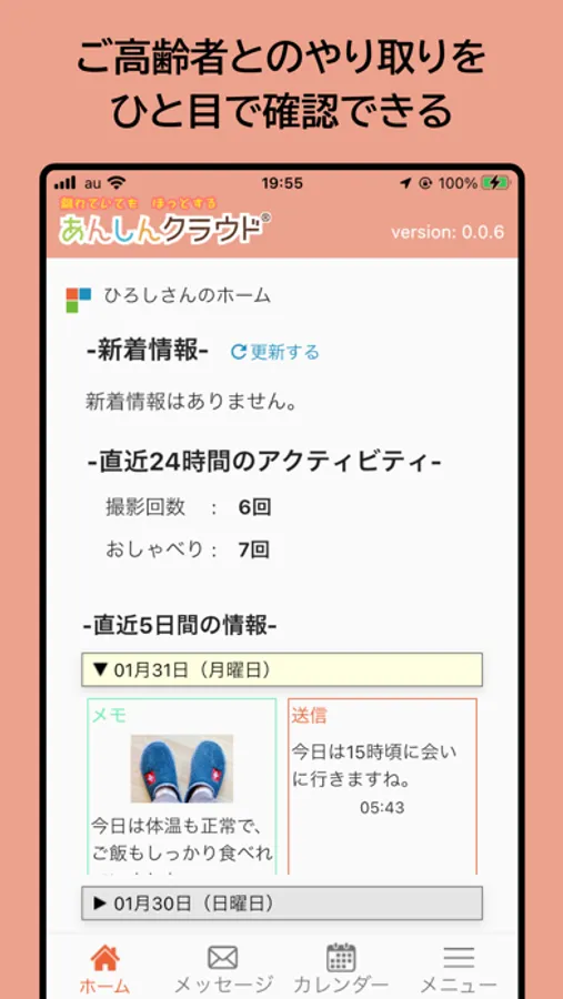 ◉メッセージ送信機能で、ご高齢者にメッセージや写真、動画を送ることができる
