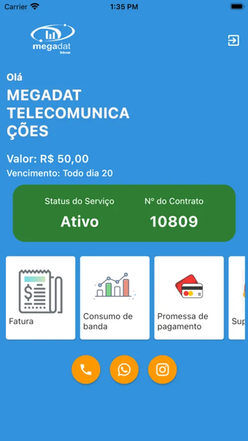 No app da Central do Assinante MEGADAT TELECOM você pode: