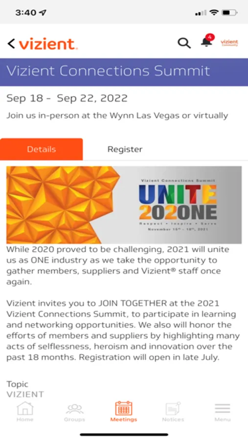 The Vizient Community allows Vizient members exclusive access to group discussion forums and group resources, receive real time notifications of member interactions, register for upcoming events, view previous meeting materials and more. Encouraging members to post queries and exchange insights with like-minded peers through a user-friendly mobile app, access group resources cultivated by Vizient experts and review curated insights and thought leadership - easily and at any time. Stay connected to your colleagues on a secure and trusted platform on your schedule, at your convenience