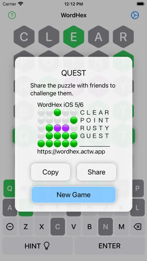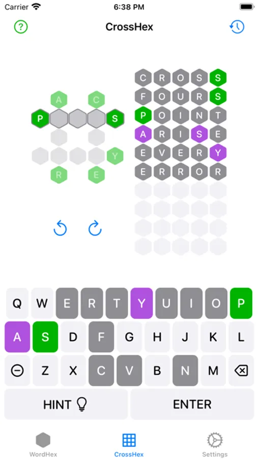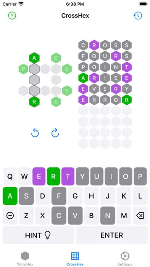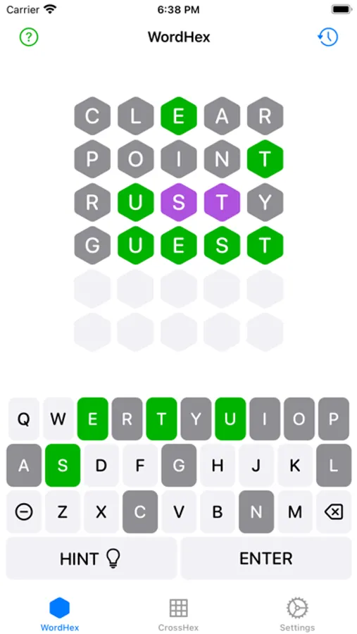 • A PURPLE hexagon means the letter is in the secret word but not in the right spot.