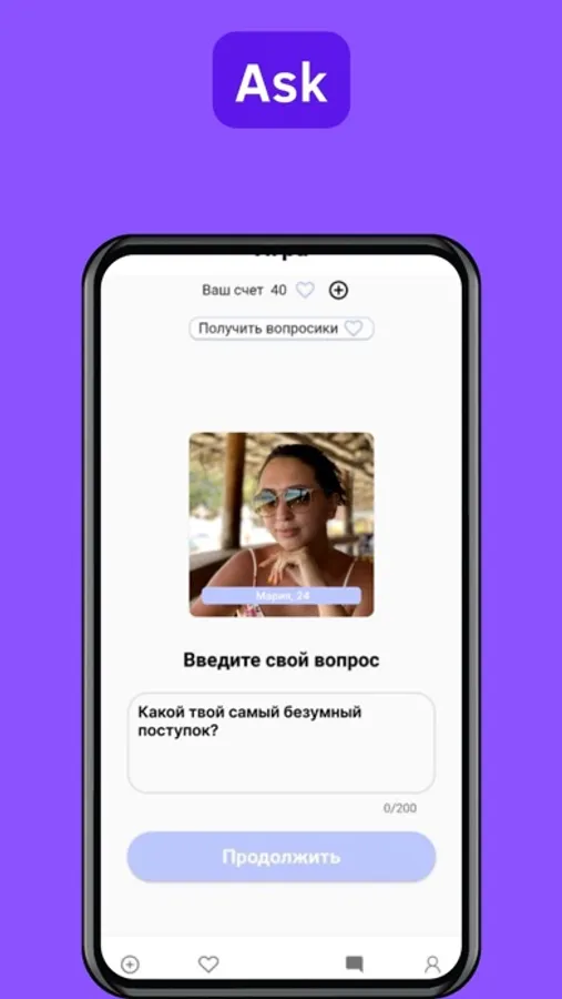 In Asker, you ask questions of the opposite sex, and he answers yours, you see the answers and you can comment, choose, and if the person chose you, then a pair is created and you can continue chatting.