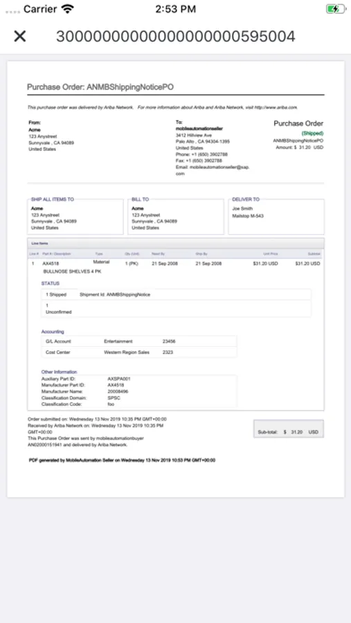 • Create documents on the go, such as PO and non-PO invoices, order confirmation, service entry sheets, advanced shipped notices, and credit memos