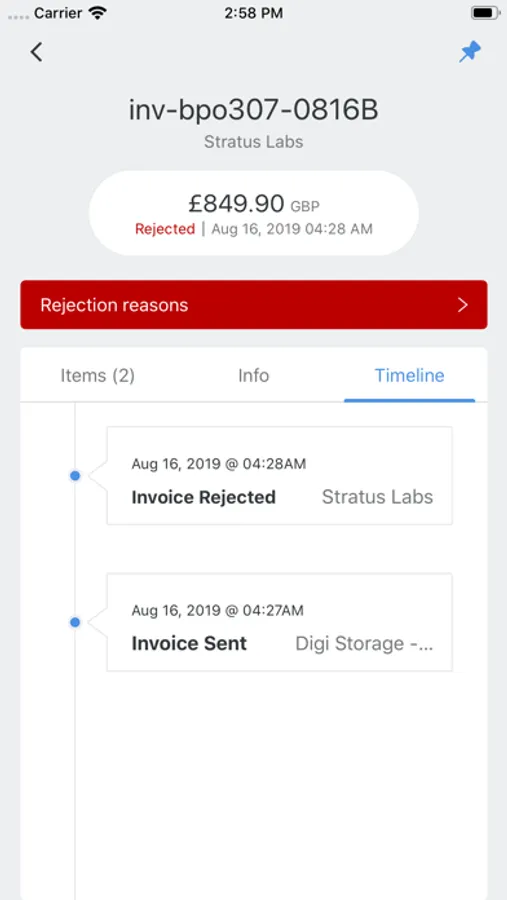 • Improve invoice visibility to understand invoice status, status changes, and historical information