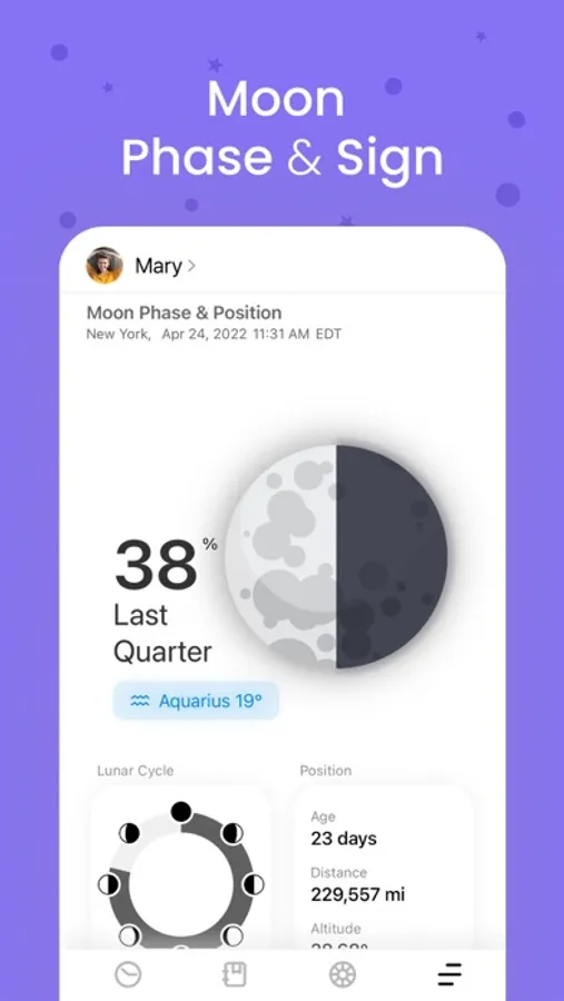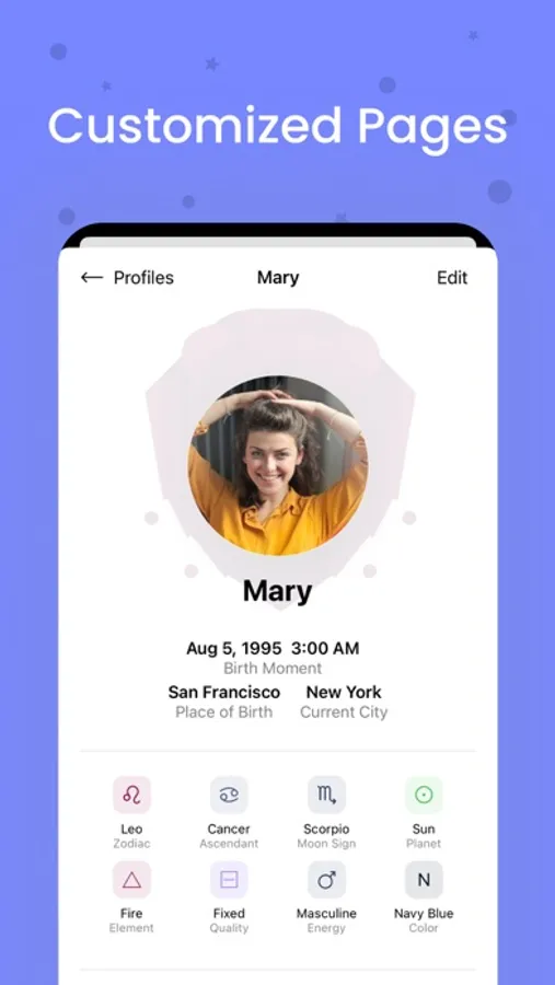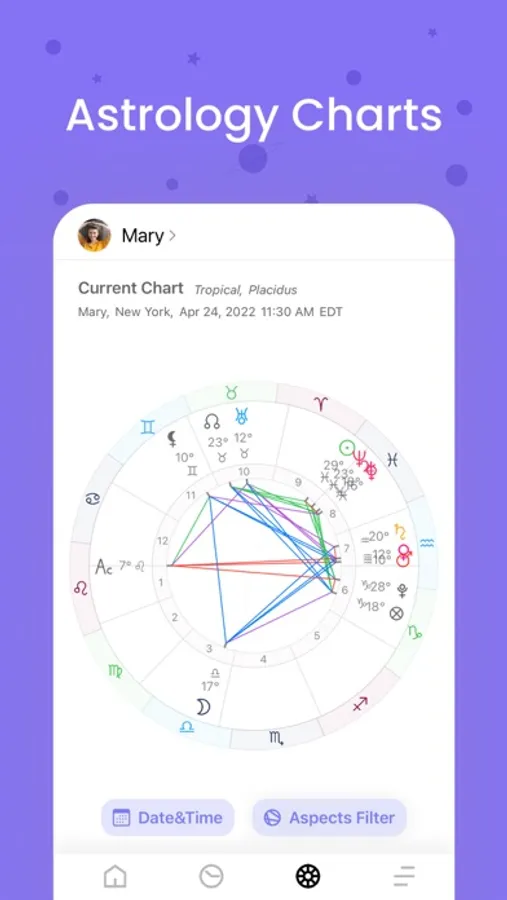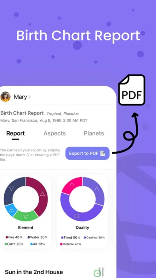 You can follow instant astrological changes with a modern and simple interface. By creating profiles of yourself and your loved ones, you can review the birth charts and share the report as a PDF.