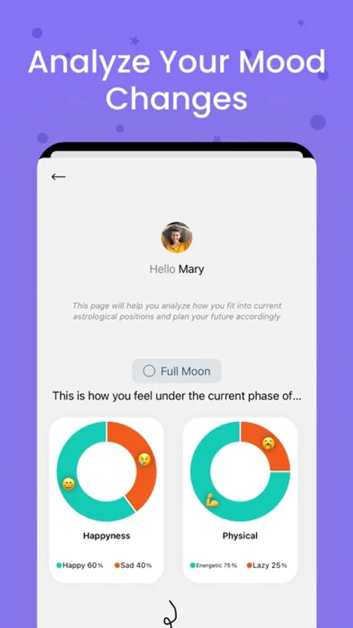 - Save your mood and review its analysis according to astrological changes