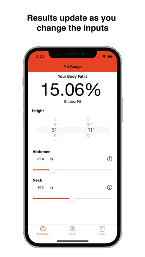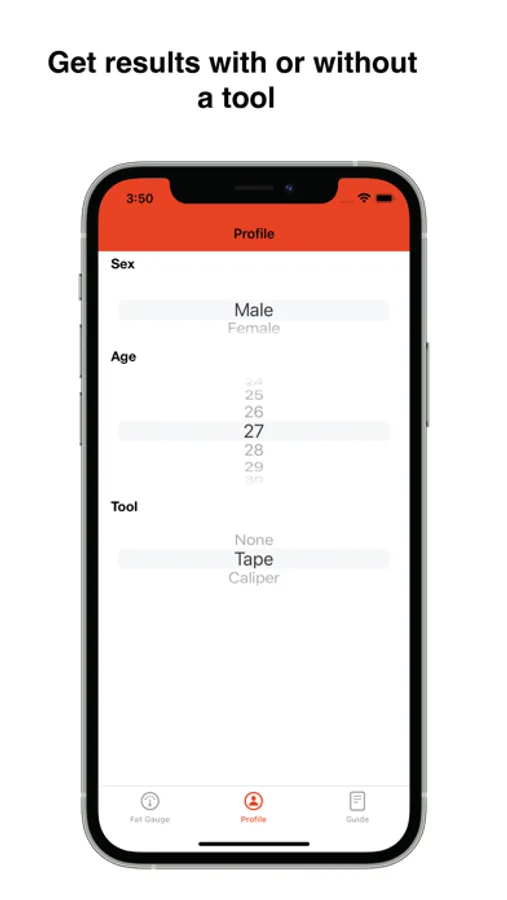 The app uses the US Navy method to calculate Body Fat using a tape, Jackson/Pollock 3-Site Skinfold equation to calculate body fat using a caliper, and BMI obtained from height and weight to calculate Body Fat without a tape or caliper.