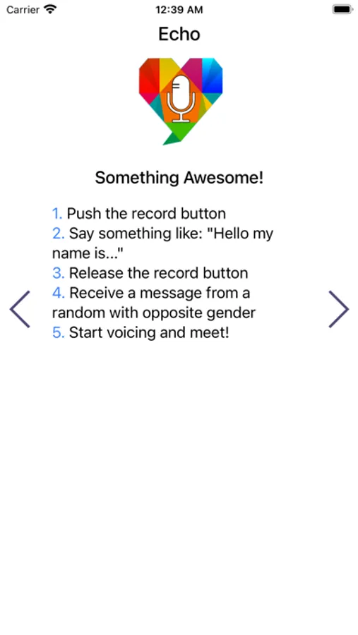 Echo - the world's only platform for Dating, which uses only voice messages! Say NO to boring monotonous correspondence with the emoticons! Feel every note of intonation! In Echo you will be sure that you are communicating with a real person - it is impossible to use other people's photos! Just click the microphone button and record your message! Where ever you are in the USA or Japan, China or Russia, Brazil or Korea - you will get an answer! Start a chat together!