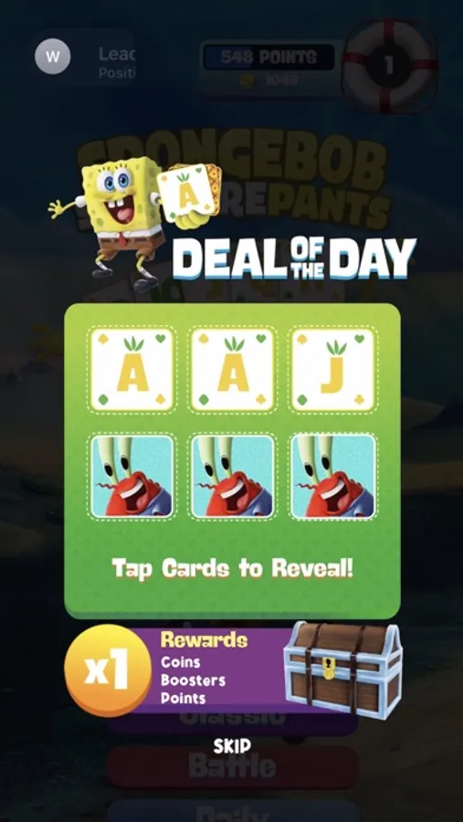 Adventure through Quest Mode where each level presents new challenges straight from the depths of Bikini Bottom! You’ll be presented with a variety of objectives like building a Krabby Patty or catching Jellyfish - all while making sure you play your cards correctly.