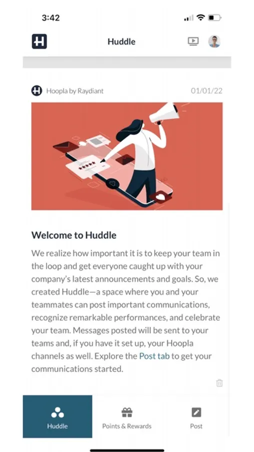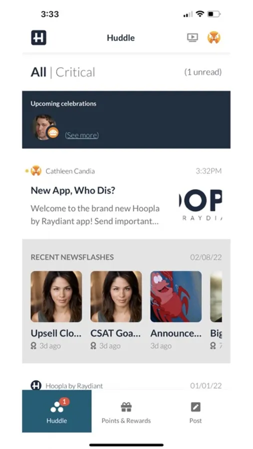 With our iOS app, your teams can be alerted to key messages, redeem rewards, and view challenge updates and key accomplishments across the company. They can personalize announcements with a photo and message. Managers can track metrics, receive push notifications about team progress, and check leaderboard rankings while on-the-go. Hoopla helps keep your employees motivated and encourages visibility where it matters most. Download it now!