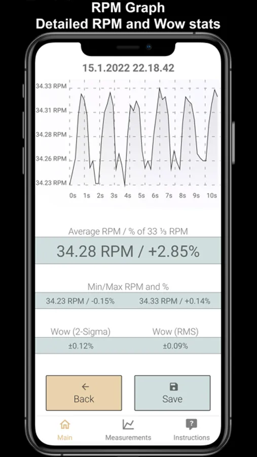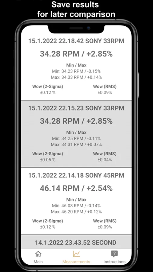 Achieve precise measurements of vinyl turntable speed (RPM) and wow by simply placing your phone on the turntable platter!
