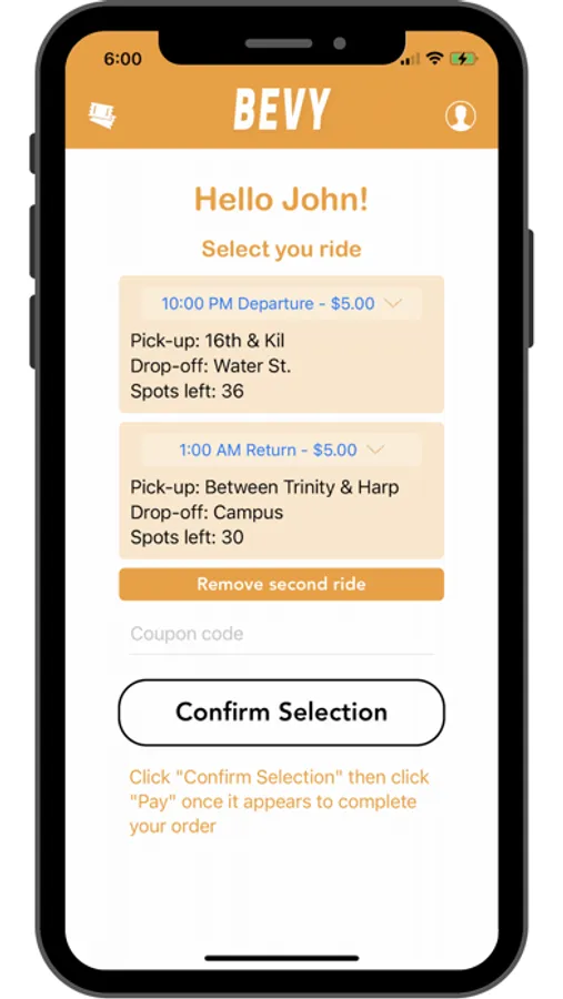 Download the Bevy Bus App to Easily and Efficiently Book Your One-Way or Round-Trip ride between Campus and Downtown.