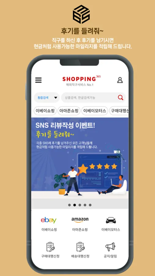 쇼핑365는 저렴한 수수료와 다양한 상품, 빠른 배송 서비스로 고객님의 해외 쇼핑에 든든한 길잡이가 되어 드리겠습니다.