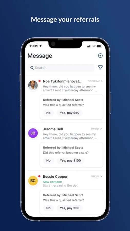 - Two way messaging with referrals. You respond within the app while the referral is getting messages over text.