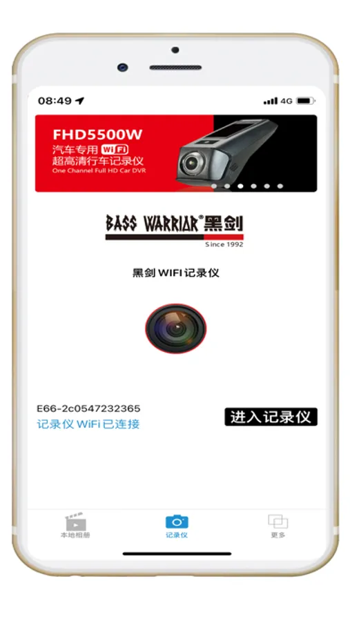 使用APP将手机与黑剑记录仪通过WIFI进行连接。