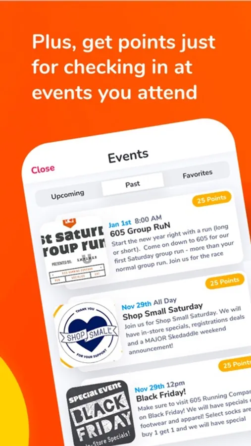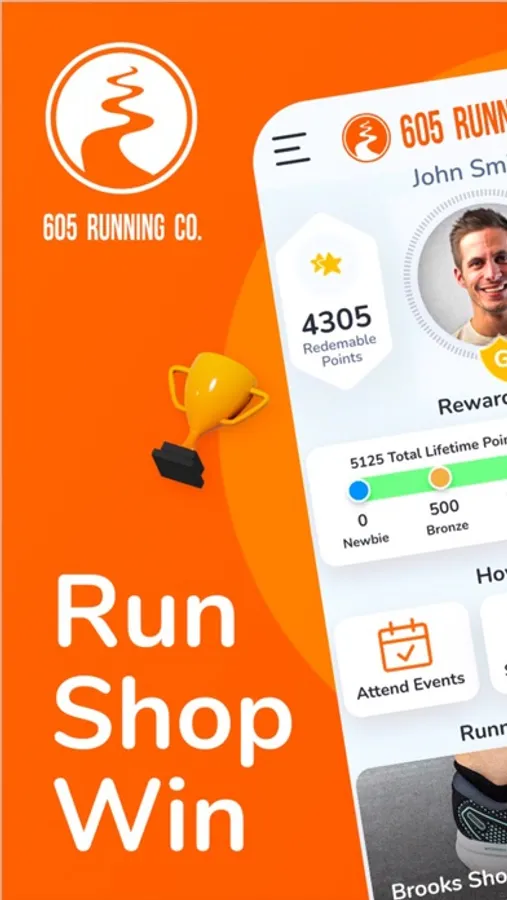 You're loyal. You shop local, stay active, and should get rewarded for it. We want you to be part of the 605 Running Company Loyalty Program. It's simple and free, just download the app and login. Shop in the app or in our store and you'll earn reward points for every dollar you spend. You'll also get reward points for checking in at 605 Running Company events. Then redeem those points for 605 Running Company digital gift cards. Plus, track your lifetime point total to level up with reward achievements, bragging rights, and other perks.