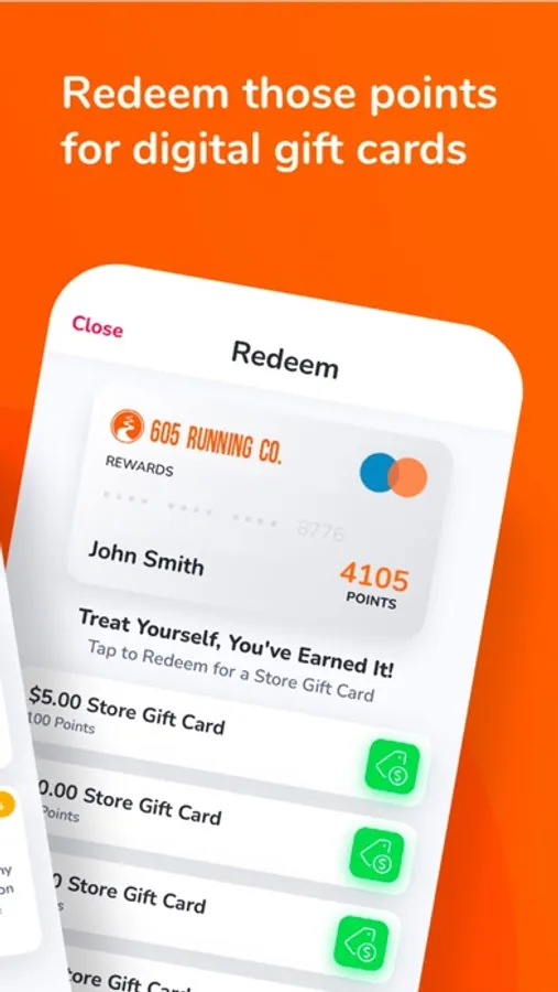 • Redeem Points for 605 Running Company digital gift cards redeemable both in-store and online