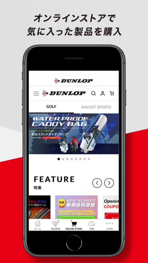 アプリのオンラインストアからDUNLOPのゴルフ用品を簡単に購入出来ます。